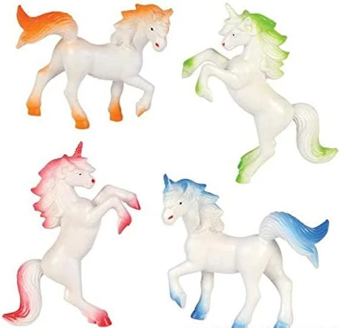 I bought these unicorns for my bachelorette party. I’ve always loved unicorns and all things fantasy, so I decided for my bachelorette I would make it a fun silly almost sleepover themed party. The unicorns are a perfect mini size, almost the same size as a HotWeels mini car for comparison. Some are prancing, some are standing up on their hind legs. The four colors shown in the picture are all the colors of the unicorns, and the bag is mixed evenly. The colors are fun and bright. Theses would be perfect for a little girl’s princess themed party or unicorn party. They were a big hit at my bachelorette because they were so unexpected and silly. We used them to scatter around tables with glitter. Then when we all left to go out to the bars my friends took them in their purses and handed them out to people!!! It was hilarious. So worth it.