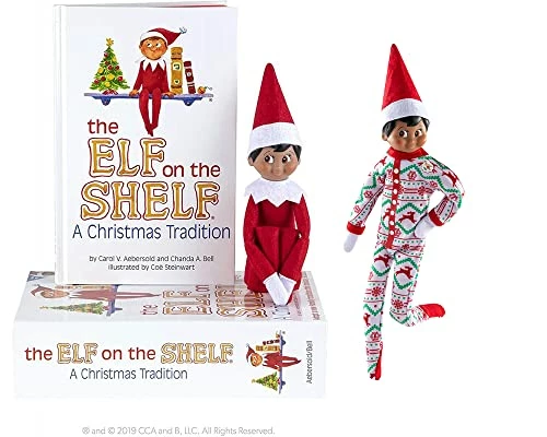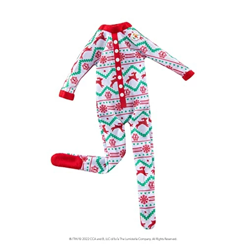 - PRODUCT SPECIFICATIONS: One-piece Fair Isle Patterened PJs SET, and one Scout Elf (Blue or Brown Eyed Boy).